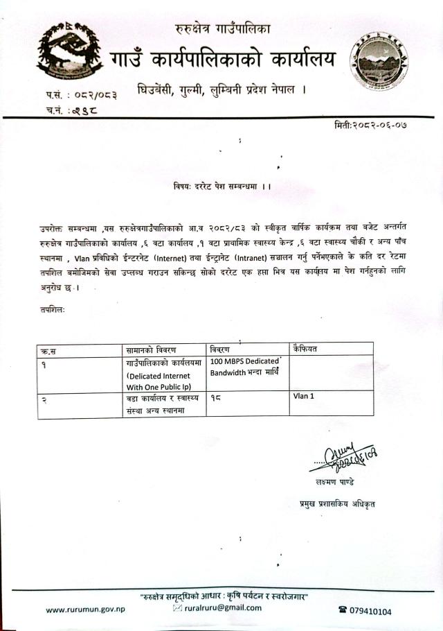 Invitation Of Bids For The Diffrent Project Of Gaupalika