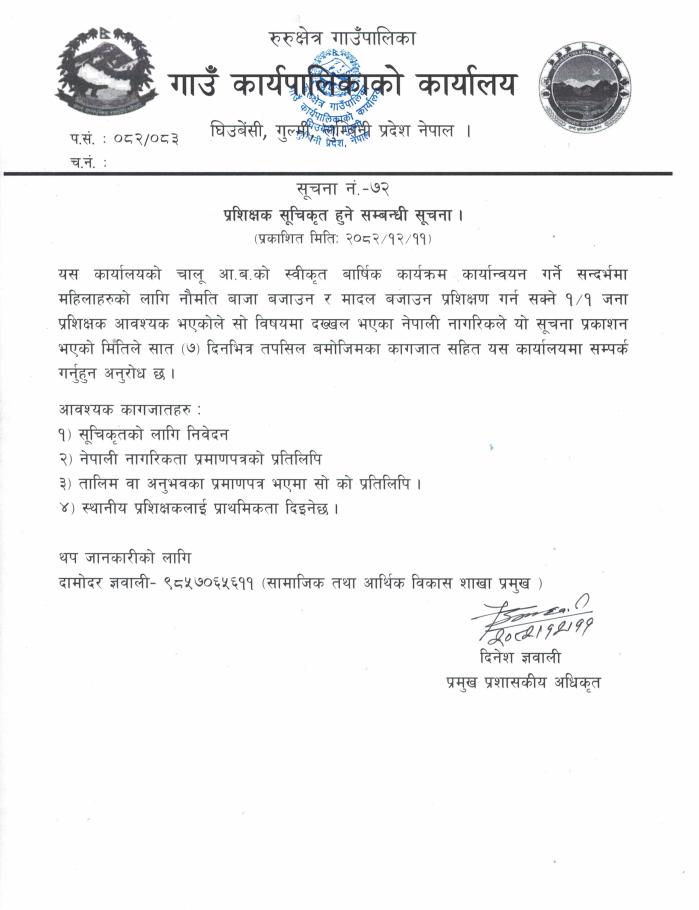 करारमा कर्मचारी पदपूर्ति सम्बन्धी सूचना ।