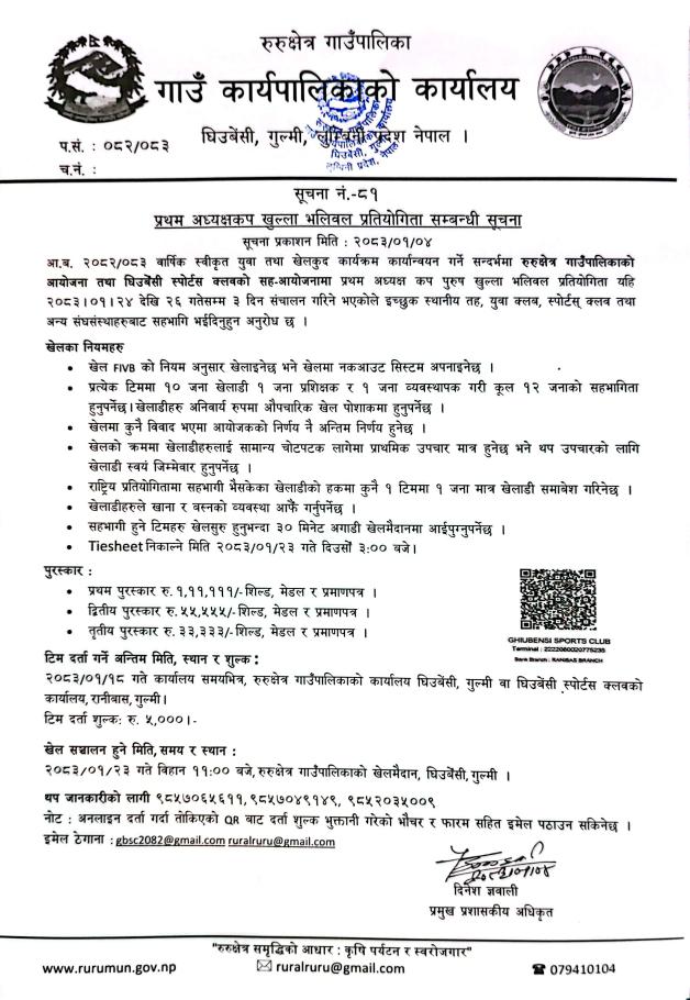 » प्रथम अध्यक्षकप खुल्ला भलिवल प्रतियोगिता सम्बन्धी सूचना