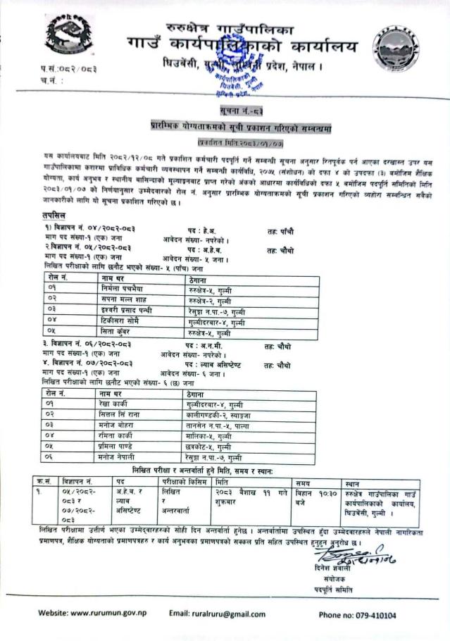 प्रारम्भिक योग्यताक्रमको सूची प्रकाशन गरिएको सम्बन्धमा।।