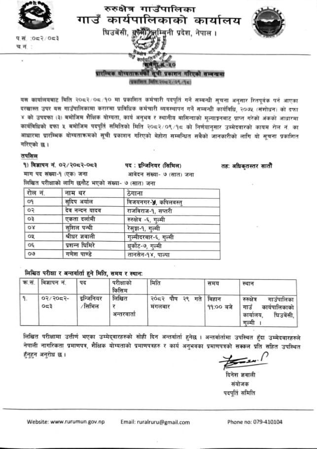 » प्रारम्भिक योग्यताक्रमको सूची प्रकाशन गरिएको सम्बन्धी सूचना।।