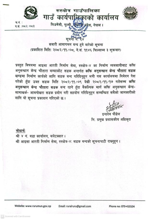 » सवारी आवागमन बन्द हुने बारेको सूचना ।।