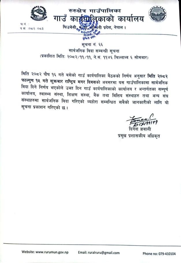 » सार्बजनिक विदा सम्बन्धी सूचना।।