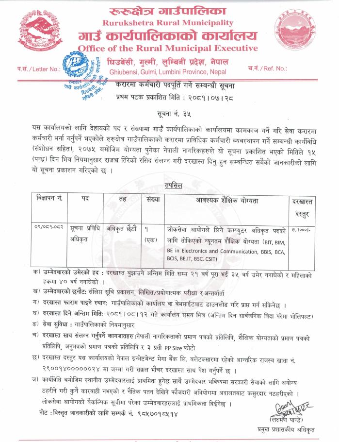 » सूचना प्रविधि अधिकृत पदकाे कर्मचारी आवश्यकता सम्बन्धी सूचना ।