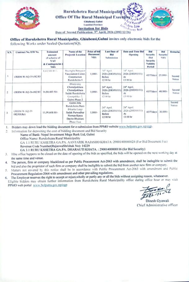 सार्वजनिक खरिद/बोलपत्र सूचना