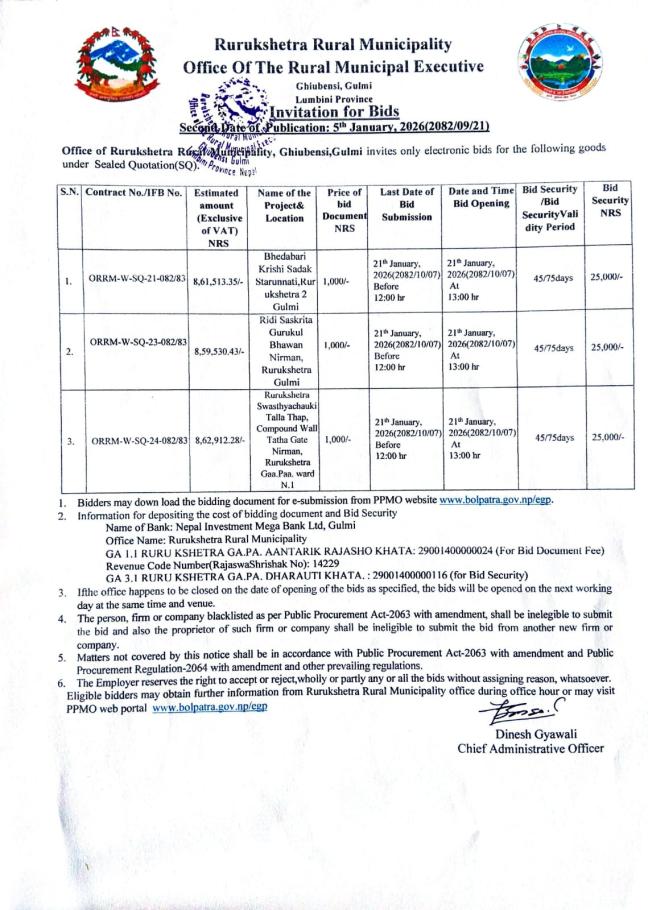 सार्वजनिक खरिद/बोलपत्र सूचना