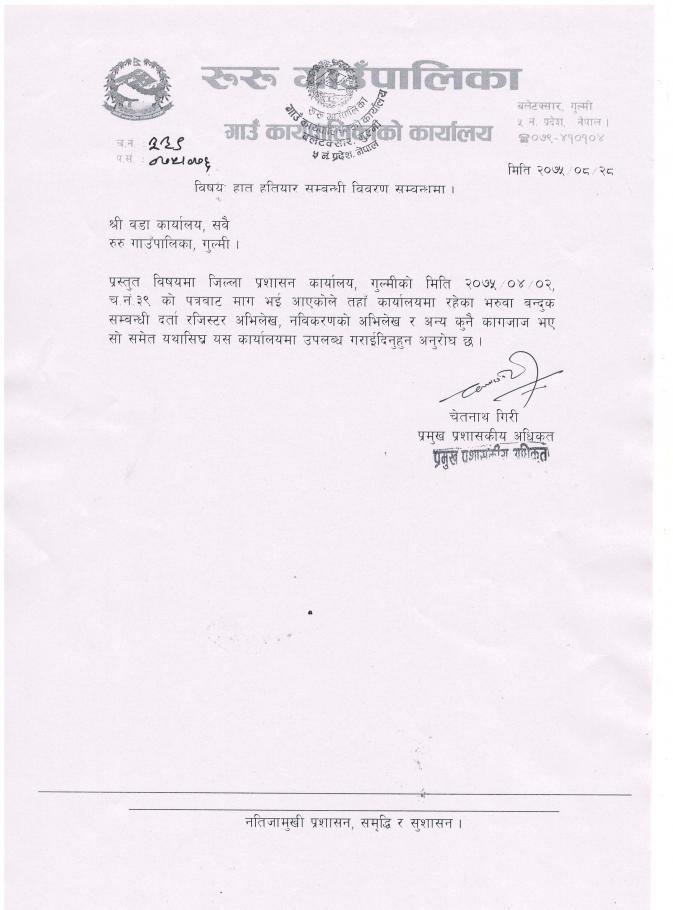 हात हतियार सम्बन्धि विवरण सम्बन्धमा |