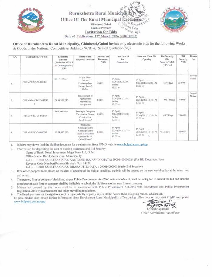 सार्वजनिक खरिद/बोलपत्र सूचना